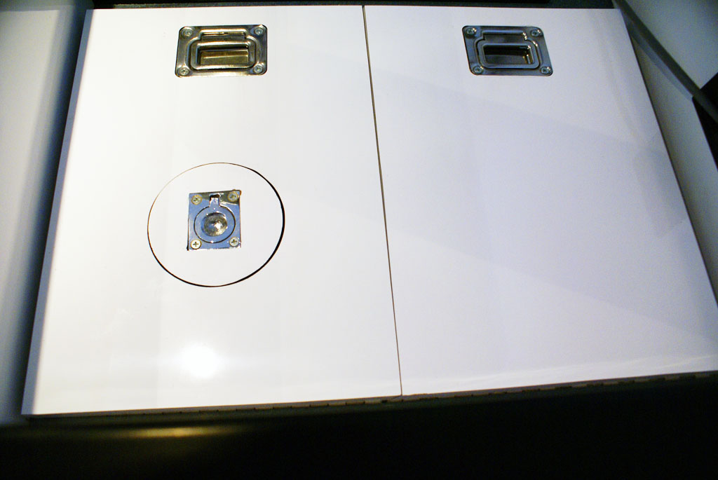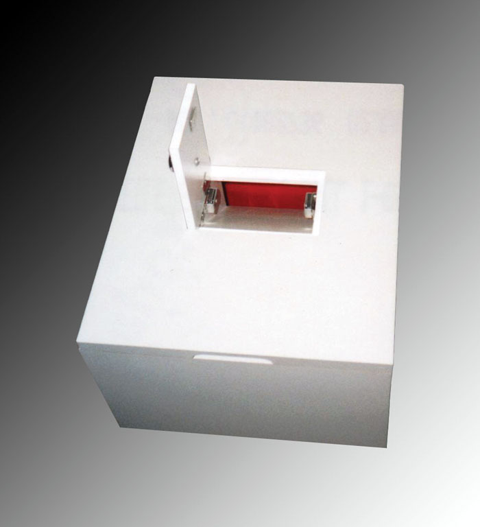 Lead lined stainless steel or laminate cabinets are available for "Sharpes",