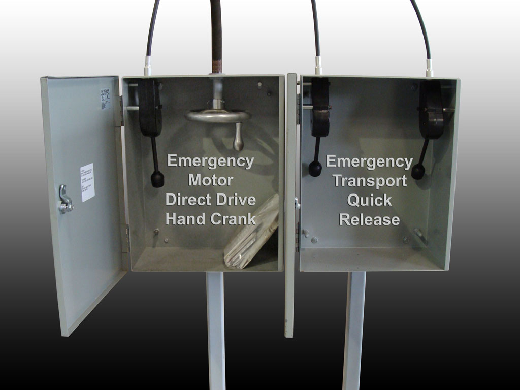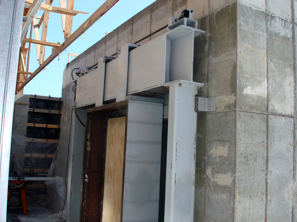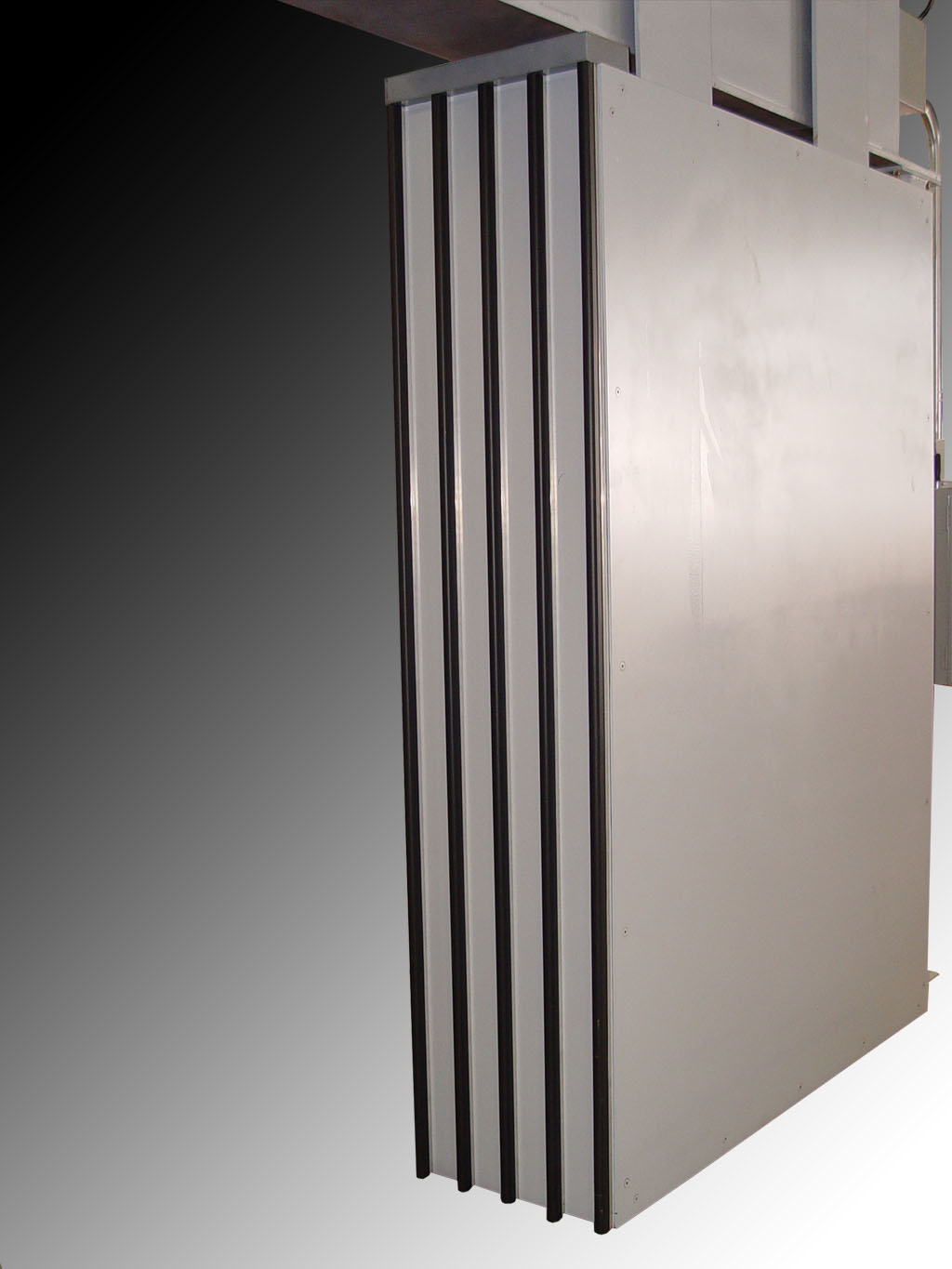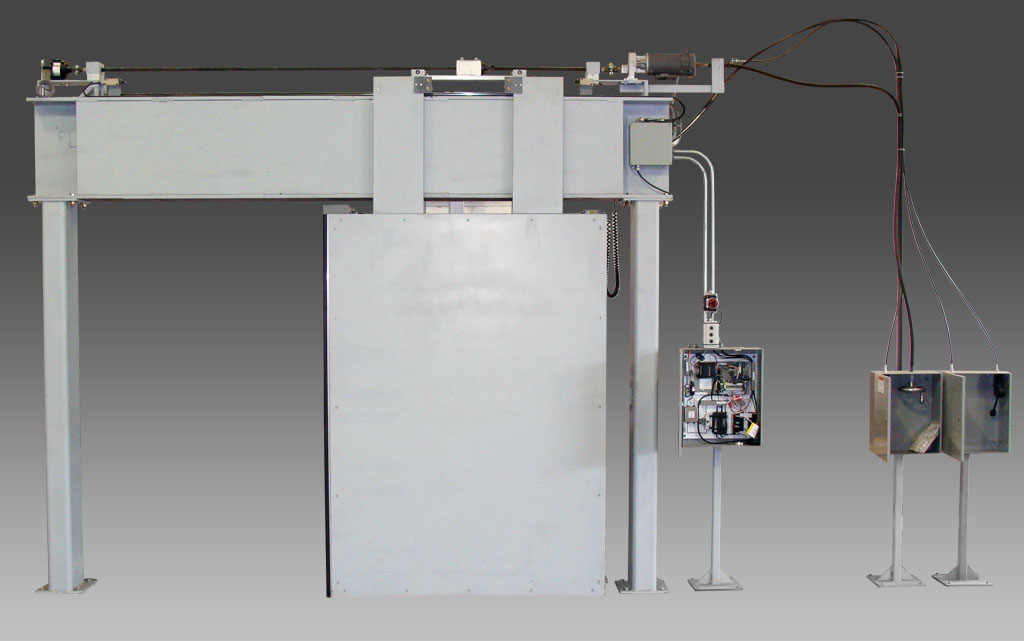 Some high energy linear accelerator installations require a specially constructed steel door with neutron absorbing borated polyethylene and lead for gamma ray absorption. Room designs that have no maze frequently require a higher level of protection at the door than those with a maze as part of the design. a-fabco's sliding neutron door is designed to withstand direct emissions by containing up to 19" of lead or lead and polyboron in combination. These very heavy doors (20,000 to 30,000 pounds) are configured to meet the physicist shielding specification and are designed for prolonged service. Proper maintenance at regular intervals is necessary to insure trouble free operation. We install the brookfield industries, Inc. NB-4000 motorized door operator, with special interlock switches and sensing edges. Entrapment is a major concern. A battery backup unit is part of every installation so that door can be opened when power fails. Additionally an optional manually engaged hand crank and an optional emergency carriage release mechanism which allows the door to be pull open by hand are available. a-fabco is a leader in sliding door safety research. We have developed procedures that in the event of catastrophic opener failure, bearing failure or other failures when used in conjunction with our quick release system can open a damaged door within an hour of our team arriving on site. Operator access restrictions may extend or decrease this time. a-fabco has a core team of brookfield industries factory trained technicians able to install, trouble shoot and maintain brookfield operators during the warranty period. An affiliated company, Accelerator Door Corporation handles repairs and maintenance beyond the warranty period for brookfield and other manufacturers operators as well. Emergency service and routine maintenance are available nation wide. Service contracts are available. Our Affiliated Service Company