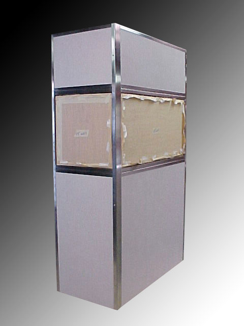 Many installations to save space are utilizing pre-made operator control walls that are factory constructed and shipped to the job site completely assembled and ready for easy attachment. Since these are rarely thicker than 2" they save floor space and reduce the trauma of having to build a framed wall in the x-ray room. Barriers with lead acrylic windows offer an added advantage of being approved for "full width" window viewing and not subject to the NCR recommendation which suggests the window be at least 18" in from the end of the wall so that the operator is not tempted to communicate with the patient by having their head beyond the protective wall. These units can be configured in any arrangement and each segment will be shipped completely assembled for rapid on site installation. The upper window and lower shielded opaque barrier are generally framed in 14GA stainless steel. We can match any desired customer color. |