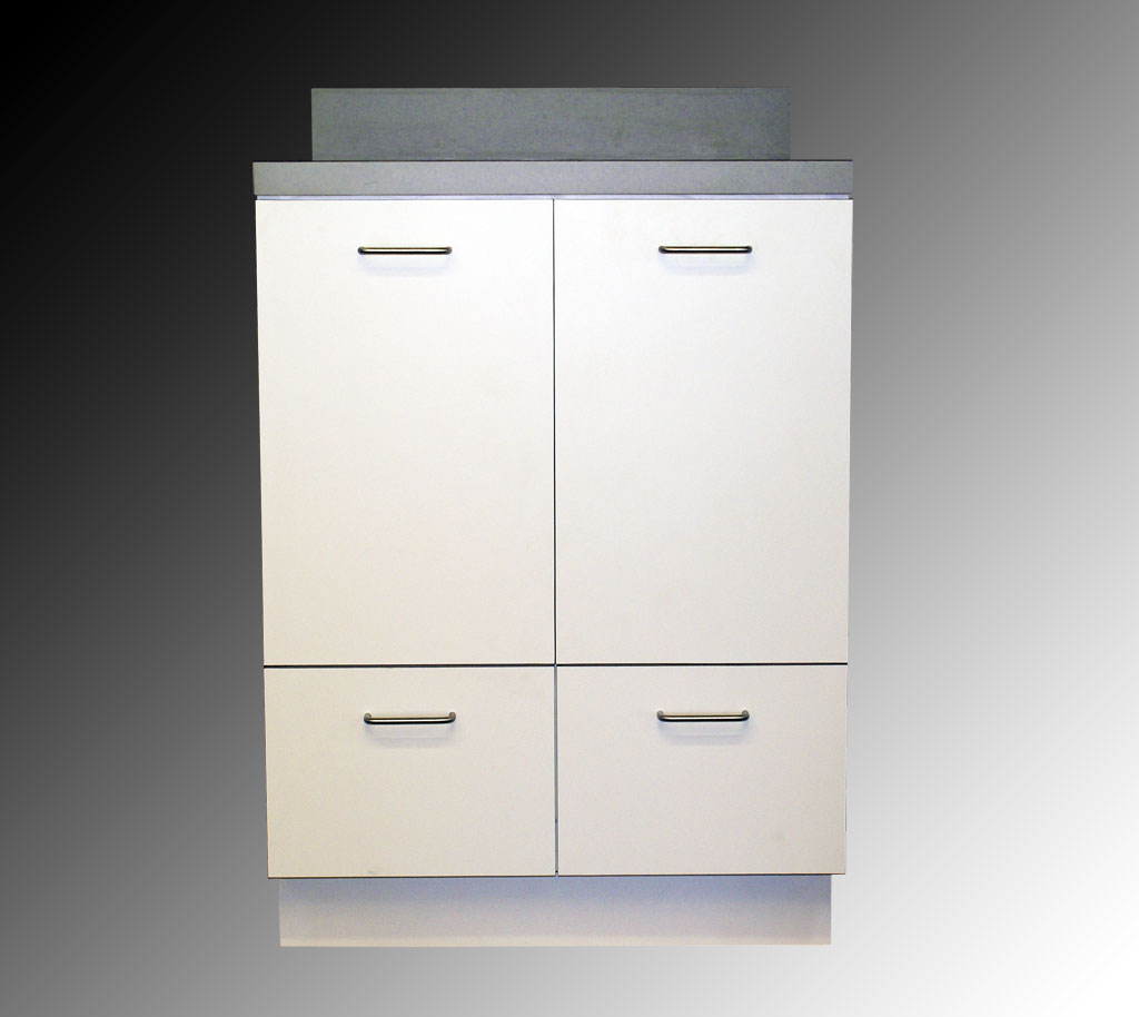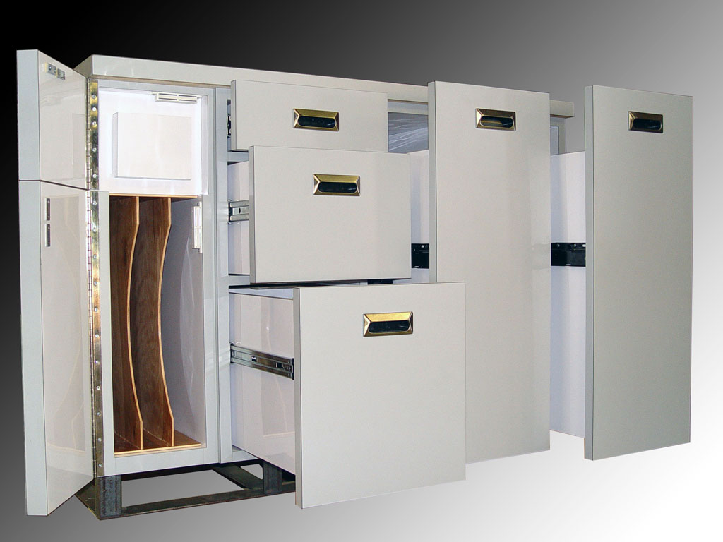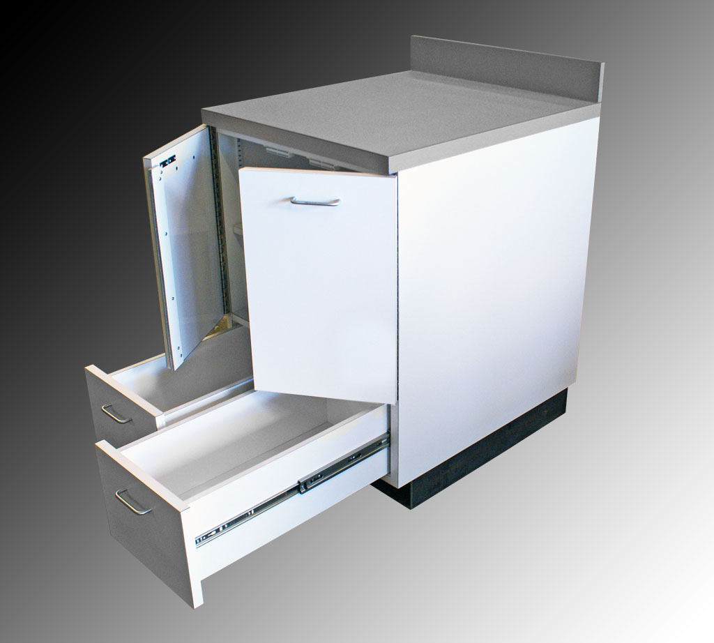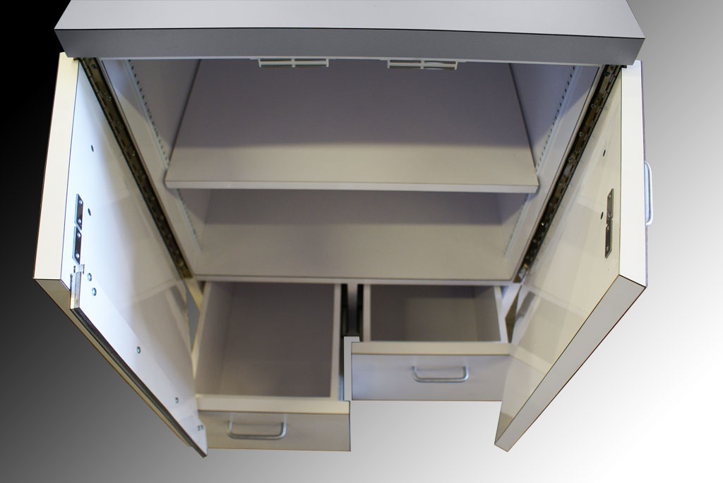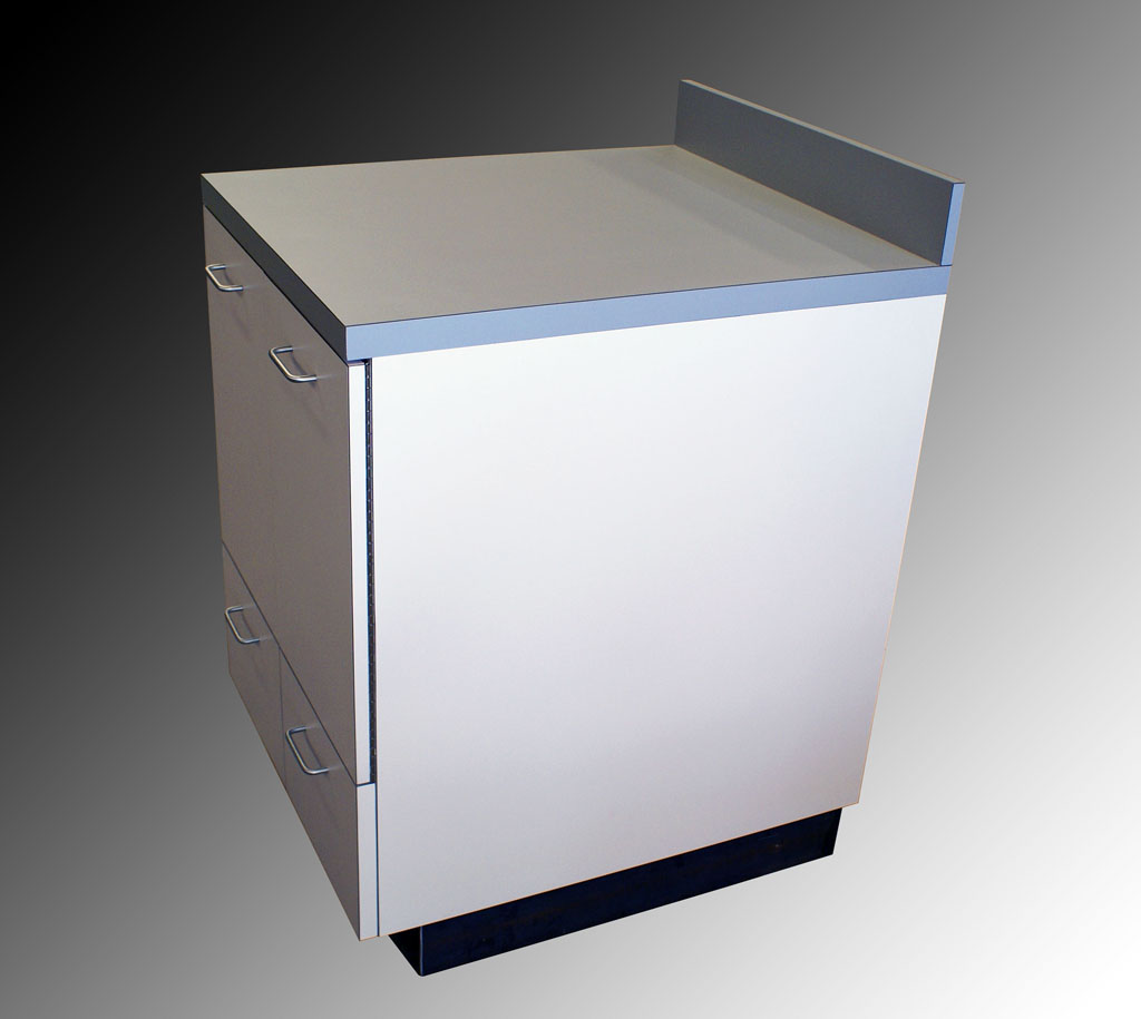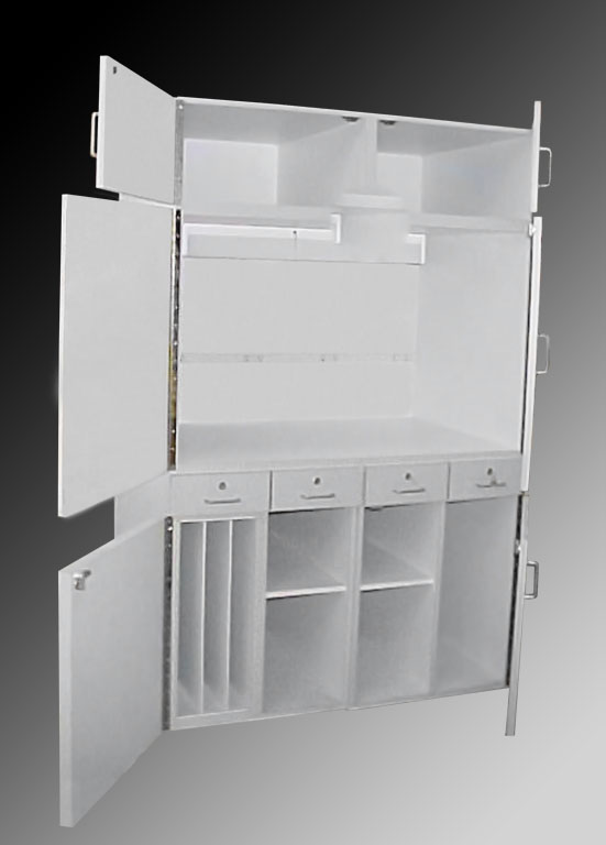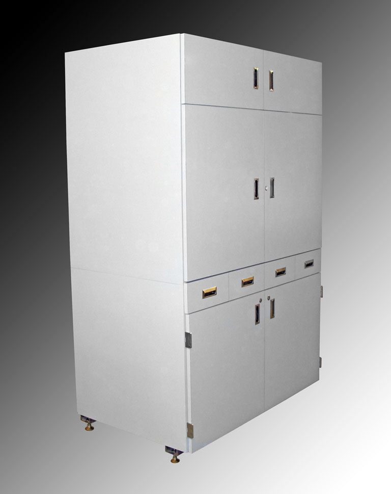 Lead lined stainless steel or laminate cabinets are available for "Sharpes",